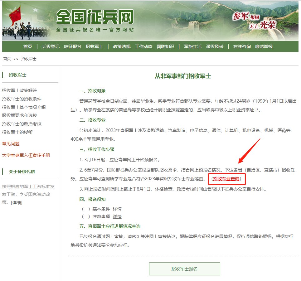 招收專業(yè)在直招軍士預報名時可以在全國征兵網(wǎng)進行查詢。