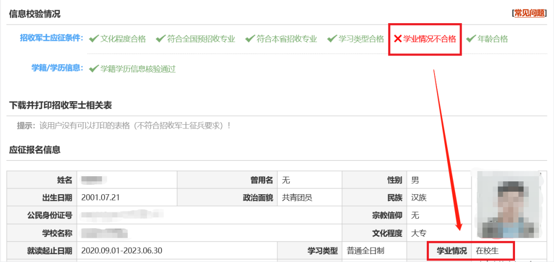 有的青年學業(yè)情況為在校生,直招軍士報名不會通過: