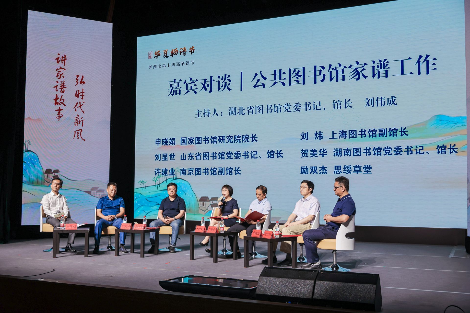 湖北省圖書館黨委書記、館長劉偉成主持嘉賓對談環(huán)節(jié)。圍繞“公共圖書館家譜工作”的主題,討論家譜在當(dāng)代社會中的重要性以及其對于傳承中華優(yōu)秀傳統(tǒng)文化和弘揚社會主義核心價值觀的作用,共商公共圖書館在家譜研究方面應(yīng)扮演的角色與推動家譜研究的發(fā)展項目。