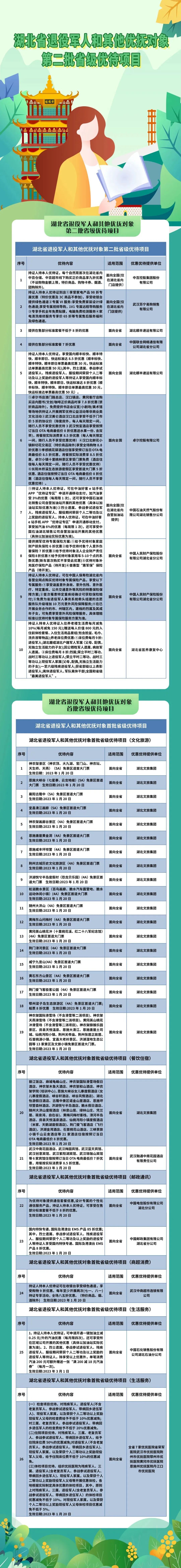 今年1月9日,湖北省退役軍人事務(wù)廳與中國(guó)電信湖北分公司、中國(guó)郵政湖北分公司、中石化湖北石油分公司、湖北文化旅游集團(tuán)有限公司、武漢中商超市連鎖有限公司、武漢融通中南花園酒店有限責(zé)任公司6家單位簽訂擁軍優(yōu)撫合作協(xié)議,推出全省首批省級(jí)優(yōu)待項(xiàng)目。3月14日,湖北省退役軍人事務(wù)廳聯(lián)合省文旅廳、湖北文旅集團(tuán)面向全國(guó)、全省退役軍人發(fā)布首批主題賞花路線、主題紅色路線、主題踏青路線、主題經(jīng)典春游路線等文旅優(yōu)待項(xiàng)目,讓廣大退役軍人實(shí)現(xiàn)一部手機(jī)游湖北。