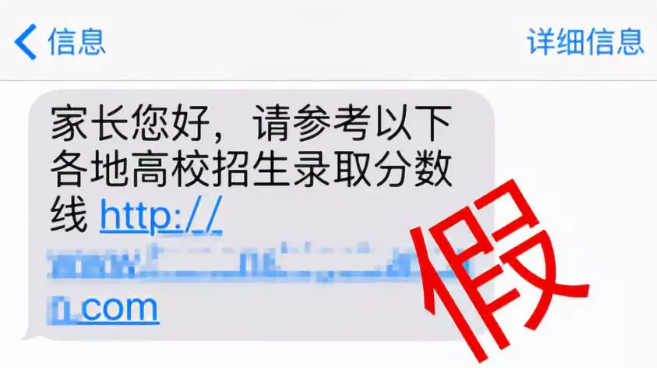 詐騙分子通過短信發(fā)送虛假查詢網(wǎng)址,哄騙考生輸入姓名、考號、手機號、銀行賬號等信息后,將這些信息販賣或者根據(jù)這些信息進行精準(zhǔn)詐騙。