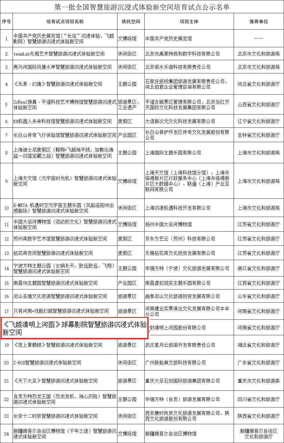 第一批全國智慧旅游沉浸式體驗(yàn)新空間培育試點(diǎn)名單