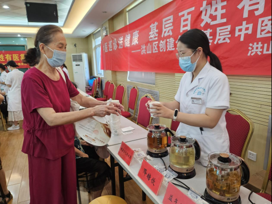 活動現(xiàn)場,梨園街東湖社區(qū)衛(wèi)生服務(wù)站家庭醫(yī)生團隊也在為居民進行血壓的檢測,中醫(yī)科帶來了多種養(yǎng)生茶飲,在辯證后為居民提供適合的茶飲進行體驗,將“舌尖上的養(yǎng)生”落到實處。此次進行茶飲體驗的居民由87人次。