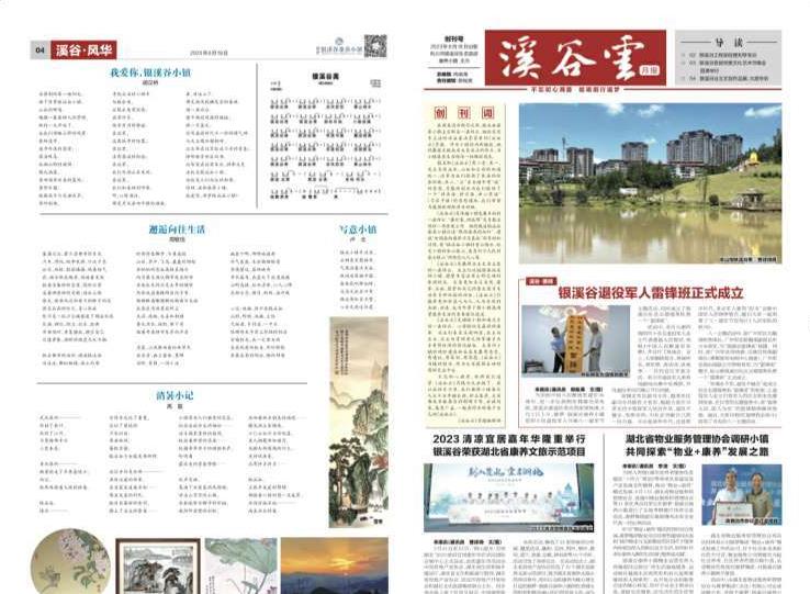 這份由銀溪谷康養(yǎng)小鎮(zhèn)出品的小區(qū)報,于今年8月18日首次與小區(qū)居民見面,一月出版一次,一期4個版,分別為溪谷要聞、溪谷一線、溪谷生活、溪谷風(fēng)華四個版面,目前每期印量2500份,放置在物業(yè)辦公室和售樓部,免費(fèi)讓居民領(lǐng)取。目前,這份報紙成為小區(qū)居民傳閱的“自己的報紙”,只需讀上幾眼,銀溪谷康養(yǎng)小鎮(zhèn)的動態(tài)就能輕松掌握。
