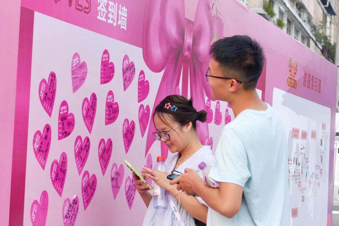本屆游園會(huì)活動(dòng)在設(shè)計(jì)之初就征集了時(shí)下最受年輕人歡迎的互動(dòng)游戲,推出的系列互動(dòng)活動(dòng)也深諳年輕人喜好,深得年輕人好評(píng)。“今年的女兒會(huì)與以往相比,我們有更強(qiáng)烈的歸屬感,這是屬于我們年輕人的活動(dòng)。”這是游客主動(dòng)向工作人員說(shuō)出的心里話(huà)。事實(shí)上,因參與游園會(huì)活動(dòng),或留下相親信息、或傳遞聲音情書(shū)、或參與愛(ài)情大冒險(xiǎn),他們結(jié)識(shí)到了心動(dòng)的另一半。