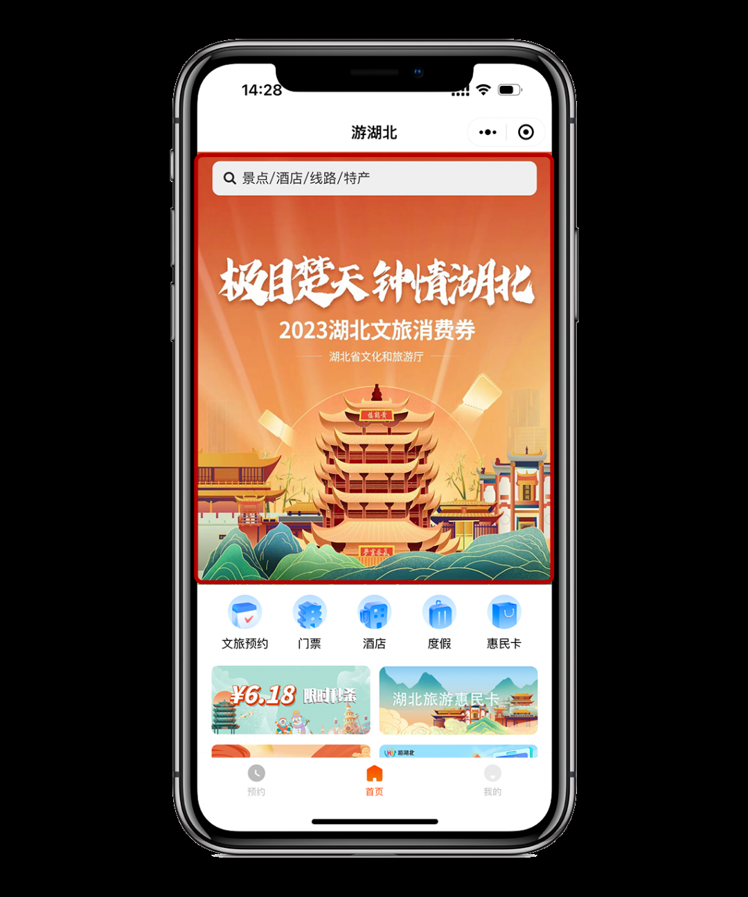 第一步:打開“游湖北”APP/小程序——點(diǎn)擊進(jìn)入“極目楚天 鐘情湖北”文旅消費(fèi)券活動