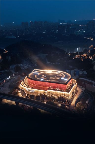 重慶·1949大劇院是國(guó)內(nèi)第一家以劇名命名的大劇院,項(xiàng)目選址位于重慶市沙坪壩磁器口片區(qū),屬于重慶市的“老城區(qū)”。建成后的建筑與周邊傳統(tǒng)街區(qū)風(fēng)貌共生共融,如同從原生環(huán)境中生長(zhǎng)出來(lái)一般自然而不做作。該劇場(chǎng)的外形是一座現(xiàn)代化的超大型鋼結(jié)構(gòu)建筑,既擁有著現(xiàn)代化的冷峻輪廓,又融合了重慶山城的獨(dú)特風(fēng)貌。