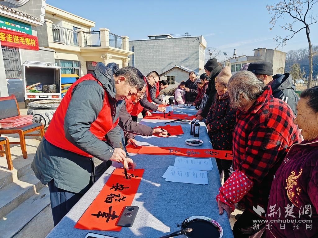 荊楚網(wǎng)(湖北日?qǐng)?bào)網(wǎng))訊(通訊員陳冬青)1月24日,大悟縣新城鎮(zhèn)毛集村在禮山田園開展“情暖毛集送祝福 揮毫潑墨寫春聯(lián)”志愿服務(wù)活動(dòng),營造濃厚節(jié)日氛圍。