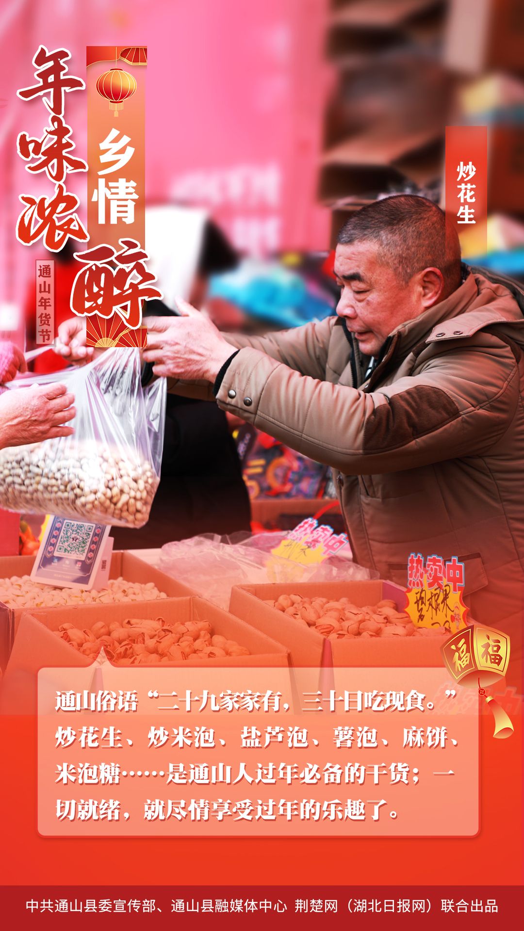 1月25日,2024通山縣首屆“年貨節(jié)”主會(huì)場(chǎng),匯集傳統(tǒng)手工美食、酒類、飲品、食品、民俗文化、工藝品、金融通信服務(wù)、特色小吃8個(gè)主題消費(fèi)展區(qū)190個(gè)展位,匯聚了該縣本地美味山珍,吸引了該縣群眾紛紛前來(lái)“打年貨”。