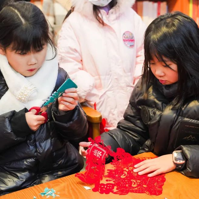 在紅巷書屋窗花區(qū),前來領窗花的人排起了長龍,觀眾們將辭舊迎新、接福納祥的愿望寄托在一幅幅年味十足的剪紙中。