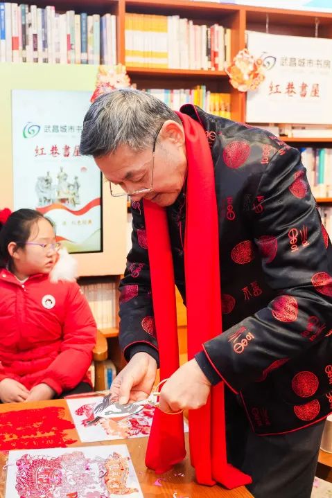 作為年俗區(qū)的常駐嘉賓,沈松柏老師已經連續(xù)3年在武漢革命博物館陪伴觀眾過小年了,他說:“我每年剪的窗花樣式在變,但是對生活的美好祝福始終不變!博物館活動的主題、形式每年都在變,但是弘揚傳統(tǒng)文化,講好中國故事的初心從未改變?!?/p>