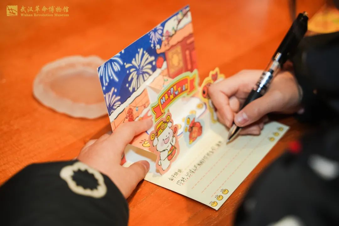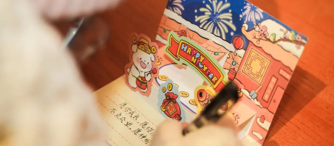 來自湖北大學的吳佳從琳瑯滿目的明信片和賀卡中精挑細選了一張后,寫下了自己的新年寄語,隨后投入了郵筒中。