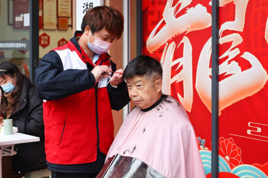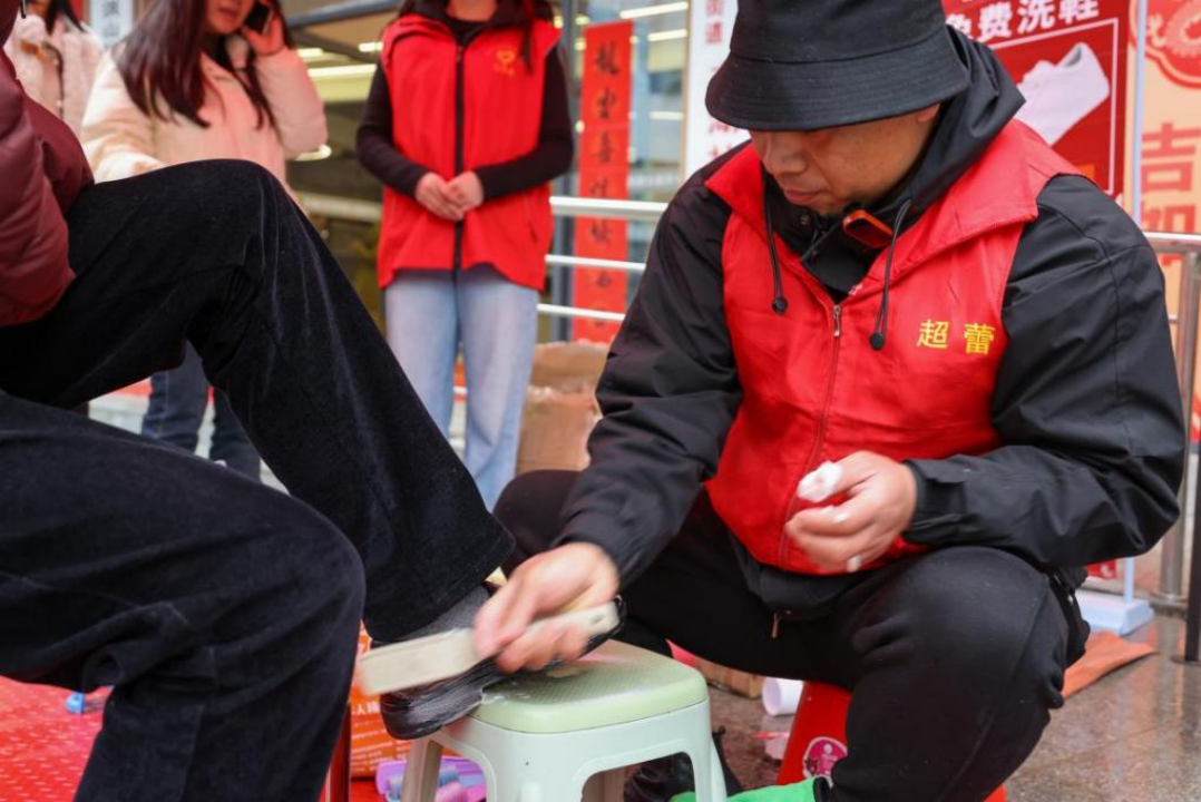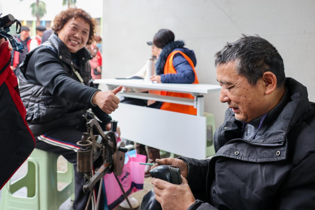 當(dāng)日清晨9點(diǎn),便民市集熱鬧開(kāi)市。非遺手工藝捏泥人攤位大受歡迎,磨刀、理發(fā)、修鞋、修拉鏈、洗鞋等等便民服務(wù)點(diǎn)位更是人頭攢動(dòng),大學(xué)生志愿者團(tuán)隊(duì)參與其中,向老年朋友們介紹活動(dòng),指引大家有序參與。前來(lái)體驗(yàn)的老年朋友們,紛紛為這些貼心的安排豎起大拇指點(diǎn)贊。