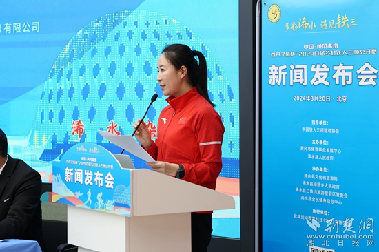 現(xiàn)場,2000年悉尼奧運會競走奧運冠軍王麗萍向鐵人三項運動愛好者們發(fā)出邀請,今年四月相約湖北浠水。