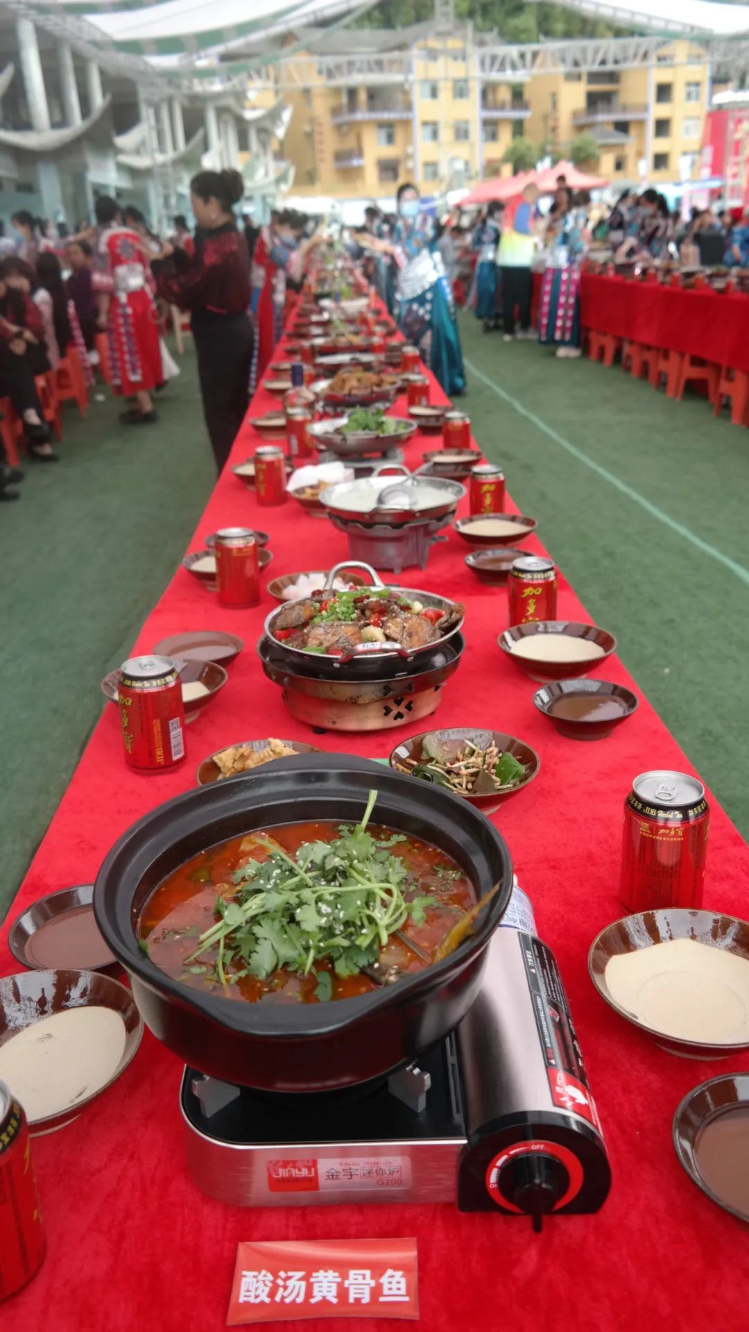 長桌宴由150張桌子拼接而成,兩側(cè)擺放座位共600個?!芭D豬蹄”“肉末合渣”“燉土雞”“硒土豆”等各種讓眼垂涎欲滴的恩施特色美食擺放上桌。大家圍桌而坐,在感受長桌盛宴的同時,各鄉(xiāng)鎮(zhèn)非遺傳承人、民間藝人爭相一展歌喉,讓現(xiàn)場觀眾在曲調(diào)優(yōu)美、民族風(fēng)韻濃郁的民歌聲中喝著侗鄉(xiāng)米酒、品特色美食,感受侗鄉(xiāng)人的幸福生活,現(xiàn)場一片歡騰。