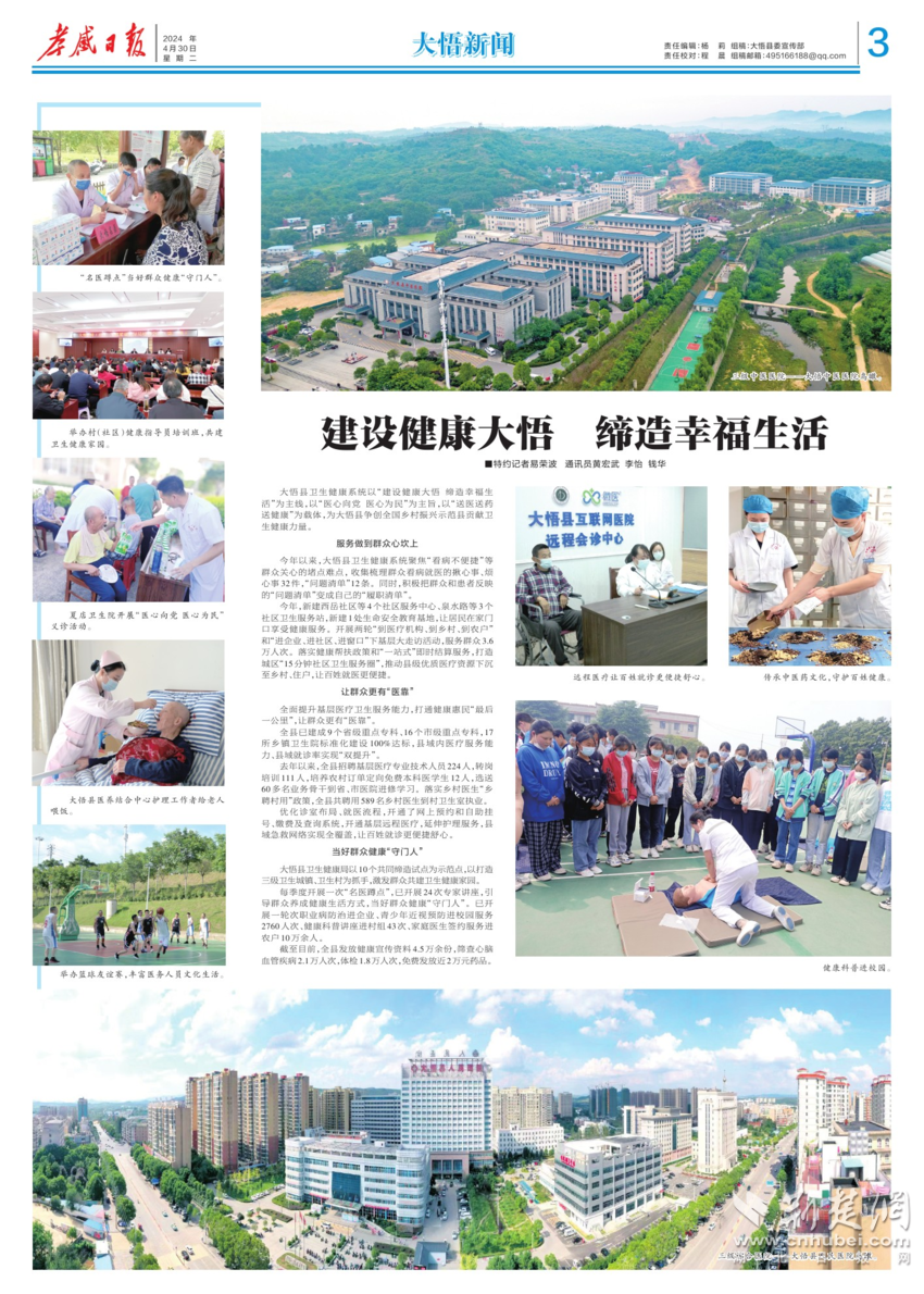 荊楚網(wǎng)(湖北日?qǐng)?bào)網(wǎng))訊 (通訊員 易榮波 黃宏武 李怡 錢華) 近年來,孝感市大悟縣衛(wèi)生健康系統(tǒng)以“建設(shè)健康大悟 締造幸福生活”為主線,以“醫(yī)心向黨 醫(yī)心為民”為主旨,以“送醫(yī)送藥送健康”為載體,為大悟縣爭創(chuàng)全國鄉(xiāng)村振興示范縣貢獻(xiàn)衛(wèi)生健康力量。