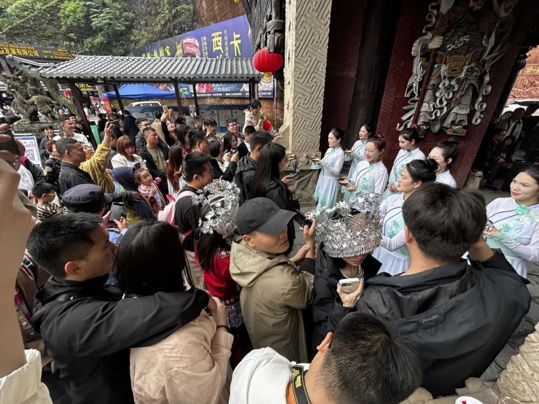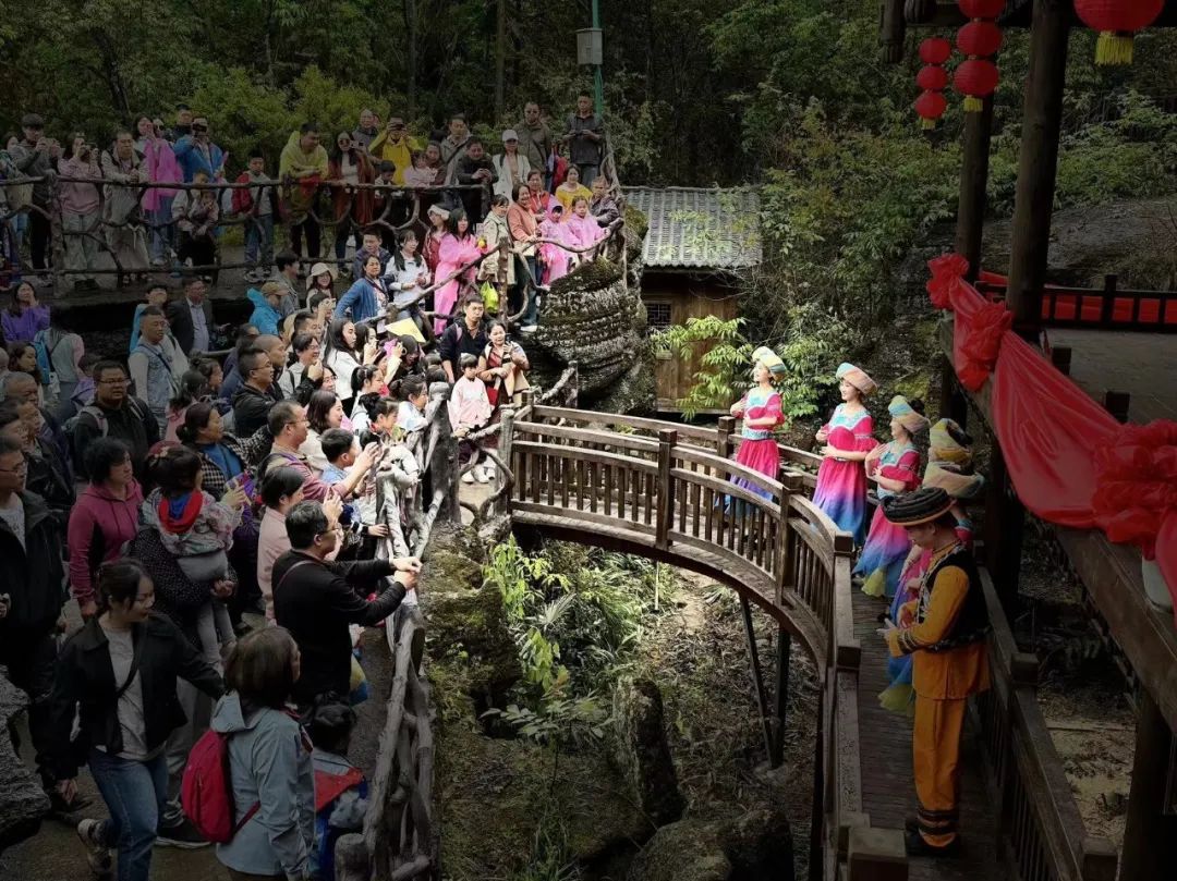 假日期間,各景區(qū)精彩活動(dòng)不斷,產(chǎn)品供給持續(xù)豐富。恩施大峽谷景區(qū)現(xiàn)場(chǎng)教游客跳擺手舞,包你學(xué)會(huì)跳一支土家舞,現(xiàn)場(chǎng)贈(zèng)送小禮品;“萌娃講解員”的講解別有一番看頭。“峽谷之美”無人機(jī)帶飛,戴上飛行眼鏡,實(shí)現(xiàn)與穿越無人機(jī)人機(jī)合一,乘直升機(jī)飛躍峽谷空中游覽,俯瞰峽谷全貌,沉浸式體驗(yàn)自由飛行穿越峽谷絕壁山巒??扉W表演、對(duì)歌、趣味答題讓排隊(duì)不再焦慮。沿途配以古箏、茶藝表演,拍照打卡,品茶聽琴,享受峽谷獨(dú)有的愜意旅途。
