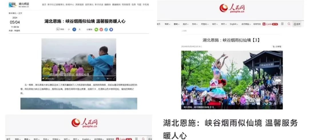 大峽谷景區(qū)受到央視新聞、新華網(wǎng)、人民網(wǎng)、長江云等主流媒體的熱點(diǎn)關(guān)注,聚焦報(bào)道《峽谷煙雨似仙境 溫馨服務(wù)暖人心》等暖人事件;抖音達(dá)人“一帶一”免費(fèi)游景區(qū)活動(dòng)備受好評(píng),#知音湖北 遇見恩施大峽谷抖音話題挑戰(zhàn)賽游客熱情參與,抖音直播首次躋身全國景點(diǎn)排行榜前十。
