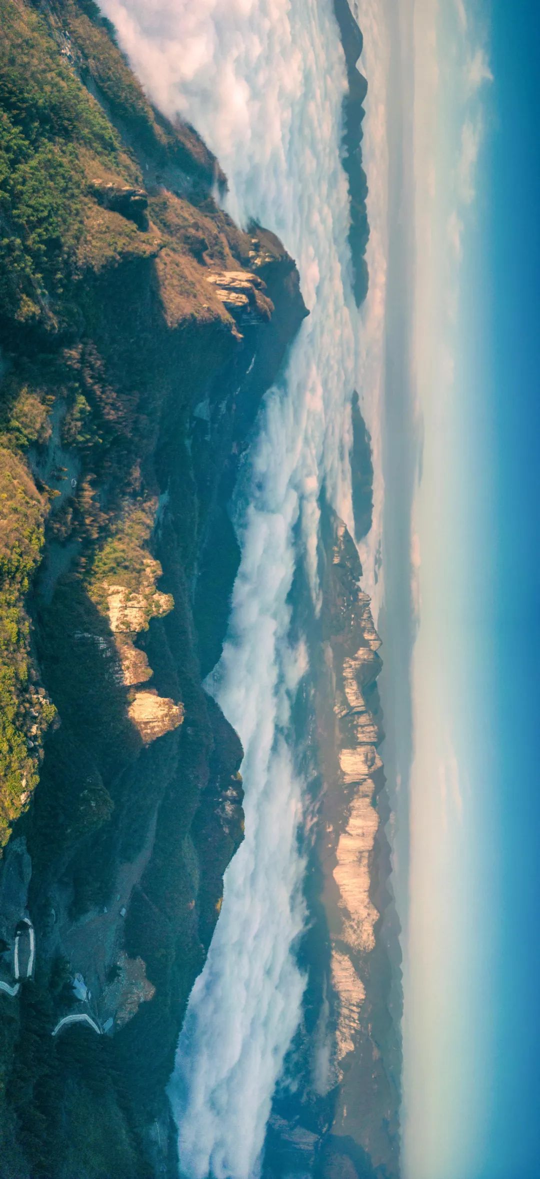 一線(xiàn)瀑布,恩施蝴蝶谷飛流而出。 圖/視覺(jué)中國(guó)無(wú)數(shù)絕美的景色,在人們印象中都是“只應(yīng)天上有”,可卻真實(shí)地出現(xiàn)在了恩施州的各地?!度朗锾一ā返扔耙曌髌?,都在“仙境”恩施取景。