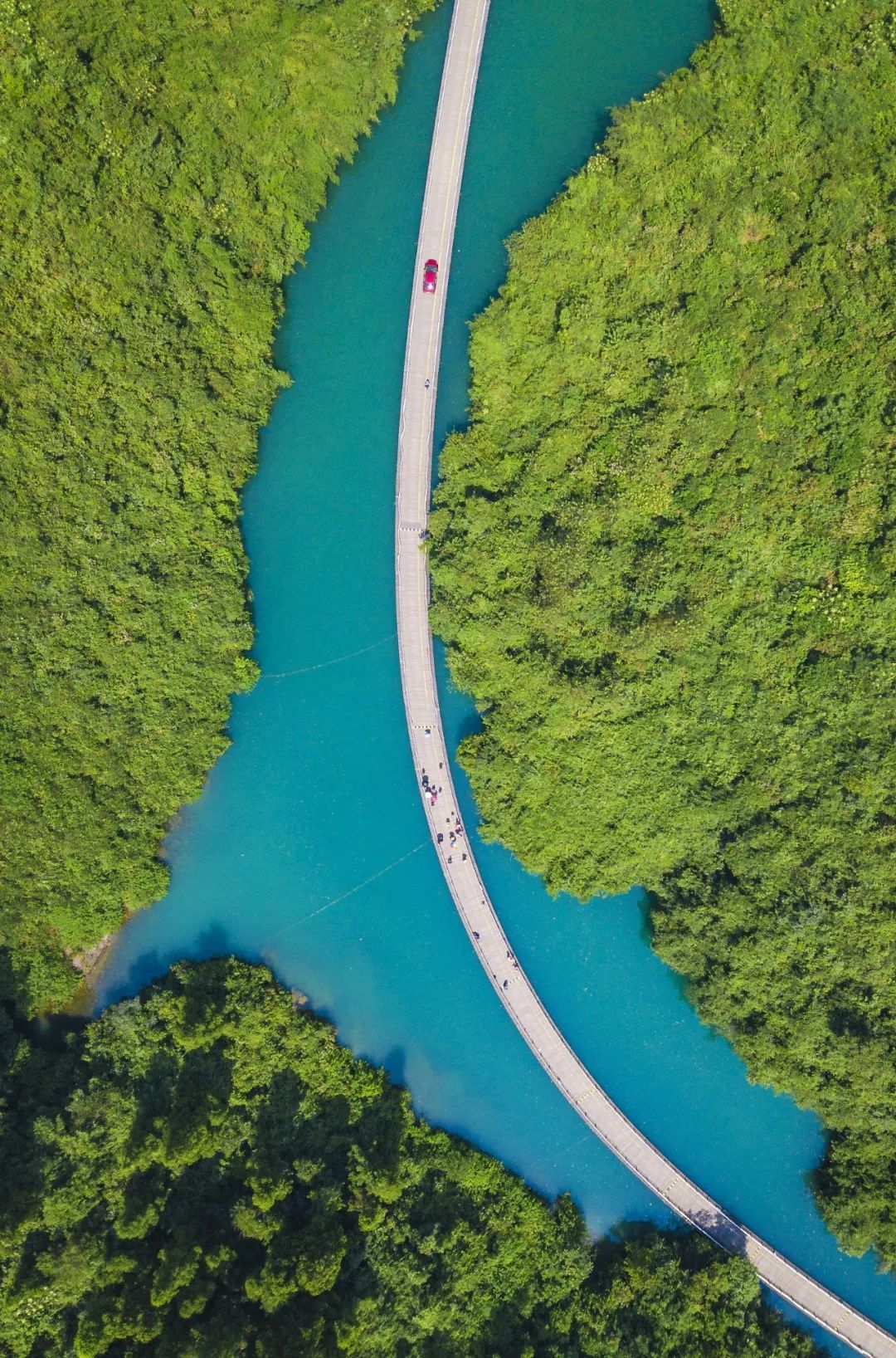 騰龍洞中起飛的熱氣球。 攝影/DoctorLuo,圖/圖蟲(chóng)·創(chuàng)意獅子關(guān)最美水上公路,讓恩施州成了網(wǎng)紅打卡圣地。這段被稱(chēng)為“廊橋遺夢(mèng)”的水上浮橋,仿佛一條蜿蜒的玉帶垂于平靜的水面。走在這條路上,讓人仿佛置身于世外桃源,一股“緣溪行,忘路之遠(yuǎn)近”的感覺(jué)油然而生。