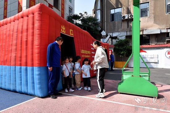 在操場,消防員指導(dǎo)小朋友試穿“滅火戰(zhàn)斗服”、佩戴消防頭盔、體驗(yàn)火場逃生帳篷,詳細(xì)講解火災(zāi)事故的危險(xiǎn)性以及如何正確撥打火警電話、火場逃生自救方法等消防安全知識,讓小朋友們對火災(zāi)有了更深刻地認(rèn)識。