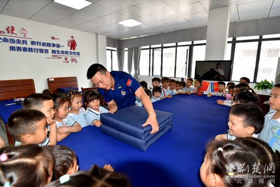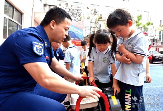 當(dāng)天上午,在黃石市政府機(jī)關(guān)幼兒園教師的帶領(lǐng)下,90余名小朋友走進(jìn)華新路消防救援站,“零距離”體驗(yàn)消防員工作生活、感受消防文化、學(xué)習(xí)消防知識。