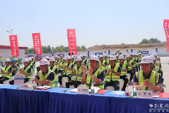 荊楚網(wǎng)(湖北日報(bào)網(wǎng))訊(記者陶輝 通訊員劉聰 陳玨 秦楣)紅旗招展,誓言鏗鏘。5月10日,在位于麻城市鼓樓街道秦家崗的合武高鐵湖北段HWZQ-1標(biāo)4號拌和站,一場鼓舞人心的勞動競賽推進(jìn)會火熱舉行。