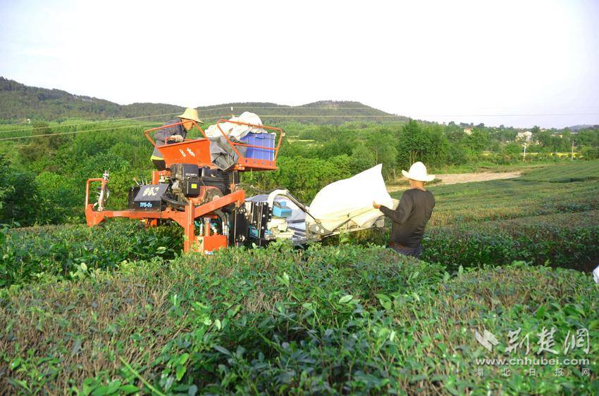 荊楚網(wǎng)(湖北日報網(wǎng))訊(通訊員 易榮波、石小清、李怡)近日,記者走進(jìn)大悟縣河口鎮(zhèn)金墩村湖北半兵衛(wèi)茶業(yè)有限公司茶園,只見一派忙碌的景象,采茶機(jī)正在茶園往來穿梭,工人正將剛剛采摘的新鮮茶葉裝運(yùn)進(jìn)廠。