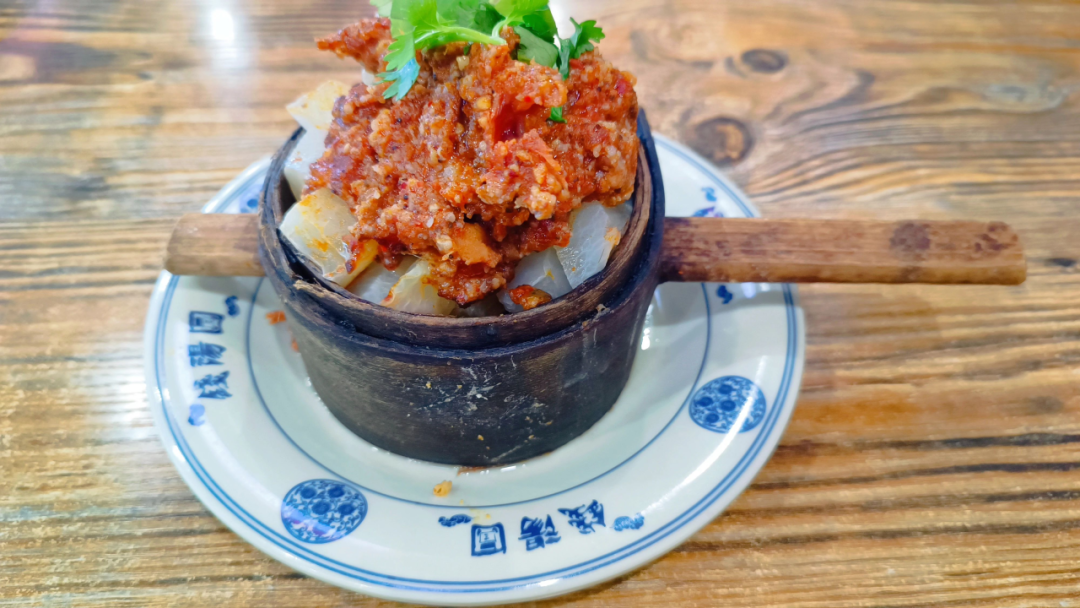 盞精巧的盅盅面,如詩(shī)如畫(huà)的面條纏繞其間,調(diào)料豐富卻又不過(guò)于濃烈,每一筷子都是清晨巷陌人間煙火的真實(shí)寫(xiě)照,平淡中蘊(yùn)藏著生活的真諦。