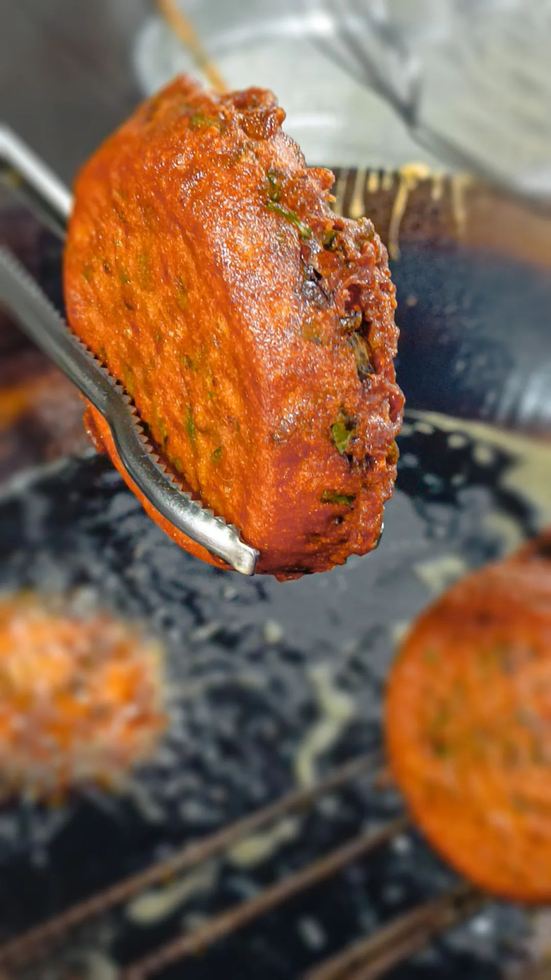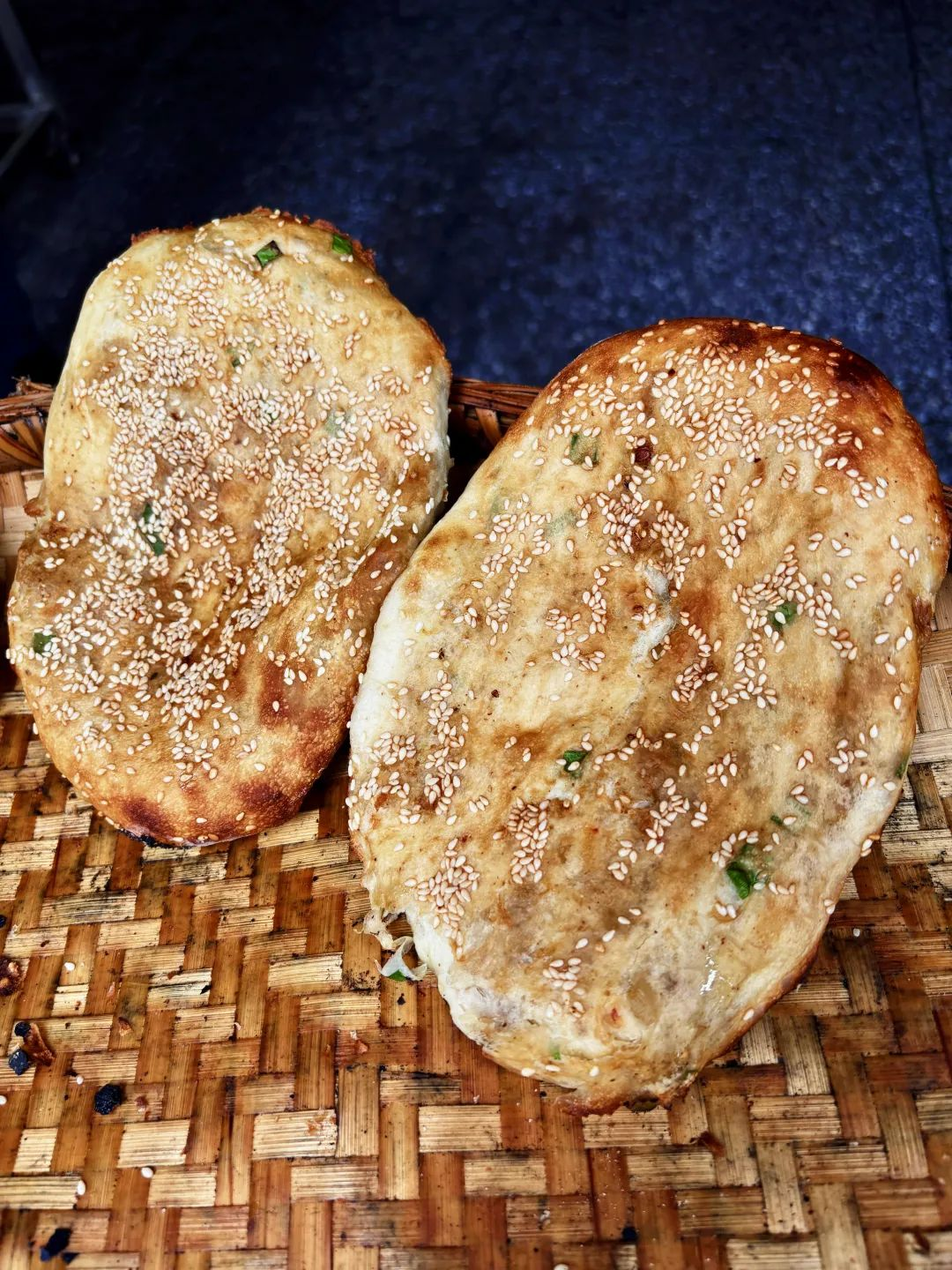 金色誘人的油香,外殼炸得酥脆,內(nèi)餡豐滿,咬破即溢出的油脂和咸香,瞬間勾起童年的回憶,它們?cè)诶辖窒镂矎浡?,成為濃厚人間煙火氣息的一部分。