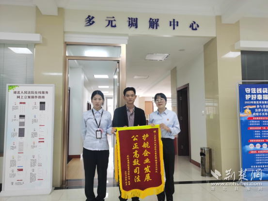 荊楚網(wǎng)(湖北日?qǐng)?bào)網(wǎng))訊(通訊員 鄧洋洋)“感謝立案庭,貨款這么快就追回來(lái)了?!苯?,武漢某商貿(mào)有限公司將一面寫(xiě)著“護(hù)航企業(yè)發(fā)展,公正高效司法”的錦旗送至云夢(mèng)法院訴訟服務(wù)中心,向立案庭訴調(diào)對(duì)接團(tuán)隊(duì)工作人員表示感謝。