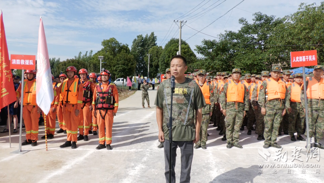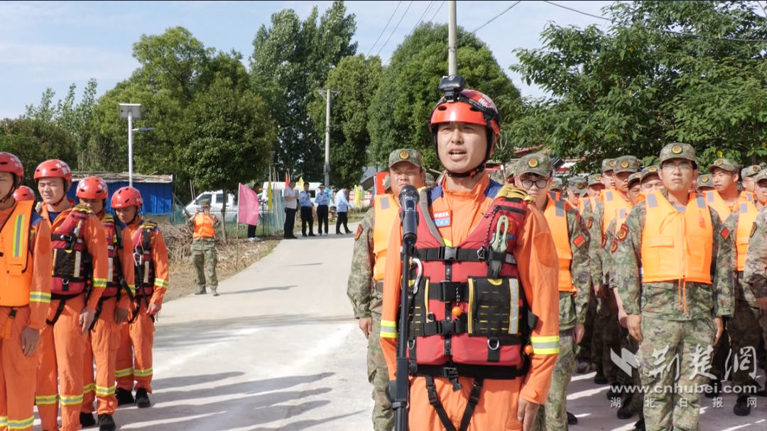 “報(bào)告指揮長!防汛應(yīng)急救援隊(duì)伍集結(jié)完畢,請(qǐng)指示!”“開始演練!”