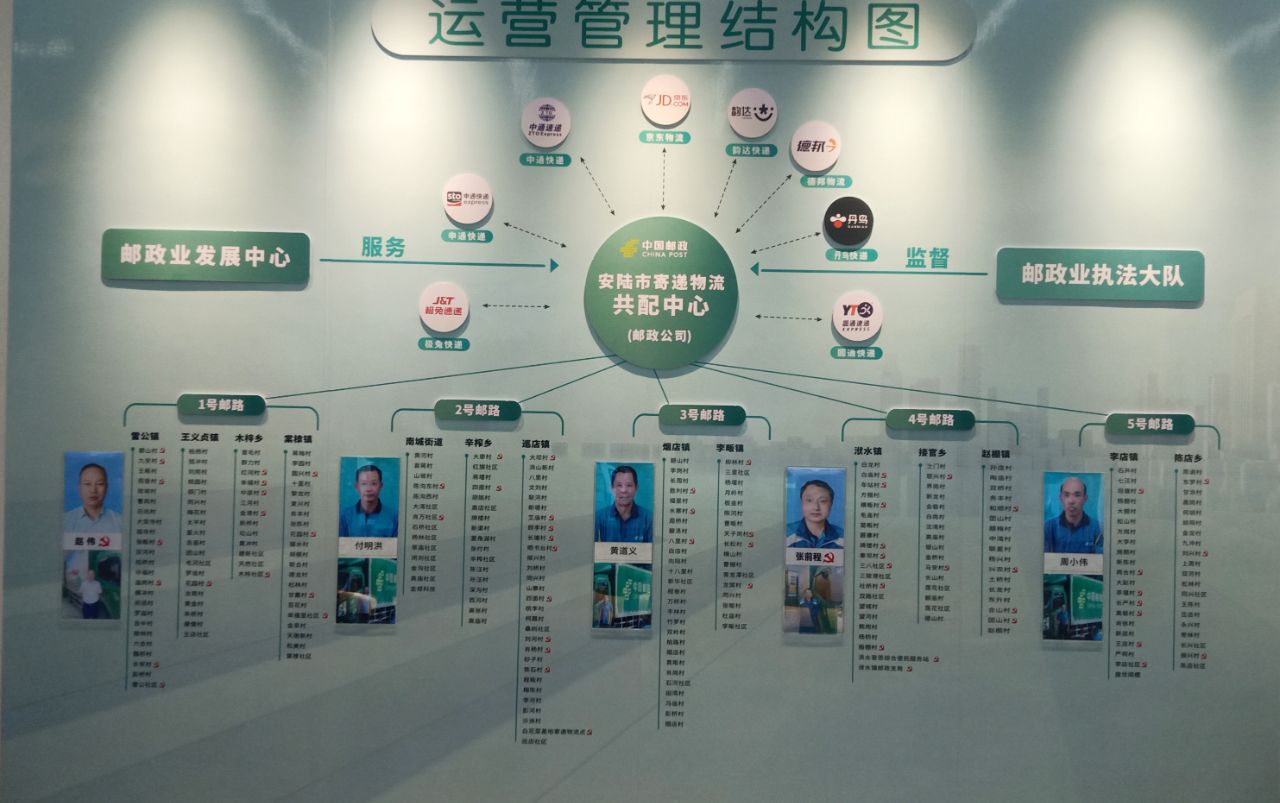 安陸市錨定打造“孝感領(lǐng)先、全省一流”目標(biāo),頂格推進(jìn)、高效運(yùn)行、黨建引領(lǐng)、助推產(chǎn)業(yè),構(gòu)建開放惠民、集約共享、安全高效、雙向暢通,可持續(xù)經(jīng)營(yíng)農(nóng)村寄遞物流體系,實(shí)現(xiàn)健康、有序、全面市場(chǎng)化運(yùn)行,以中國(guó)郵政安陸公司為基礎(chǔ),聯(lián)合京東物流、中通快遞、申通快遞、極兔速遞、韻達(dá)快遞、德邦物流、圓通快遞、丹鳥快遞八家民營(yíng)快遞企業(yè),建立安陸市寄遞物流一庫(kù)七中心。即:城鄉(xiāng)冷鏈物流配送倉(cāng)庫(kù);黨員服務(wù)中心;郵政業(yè)發(fā)展中心;智能分揀中心;視頻調(diào)度中心;農(nóng)產(chǎn)品展示中心;電商中心;快遞小哥服務(wù)中心及277個(gè)村級(jí)服務(wù)站,形成全市“寄遞物流進(jìn)出村”工程的核心節(jié)點(diǎn),并與上述快遞企業(yè)統(tǒng)一簽訂代投協(xié)議,實(shí)現(xiàn)節(jié)點(diǎn)網(wǎng)絡(luò)共享、末端服務(wù)共配、運(yùn)力資源共用。全力打造“安順達(dá)”品牌,全面助力鄉(xiāng)村振興。