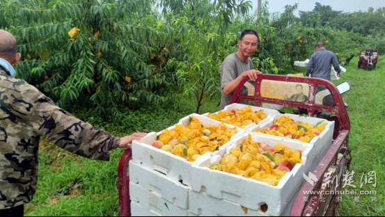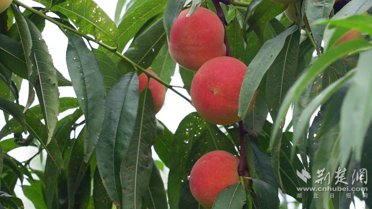 “目前上市的是水蜜桃,從浙江引進(jìn)而來,果色猶如夕陽下太湖波光粼粼的湖面,口感香甜多汁。故名‘湖景蜜露’,我們種植的這個(gè)水蜜桃,在湖北省桃評比中獲得了金獎。過段時(shí)間就是錦繡黃桃上市的季節(jié),整個(gè)果園有10來個(gè)品種的桃子,預(yù)計(jì)產(chǎn)量可達(dá)到300萬斤。”劉明說。