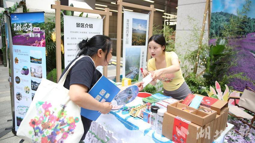 在巴東避暑目的地展示區(qū),巴東豆干、正山堂巴東紅茶、“巴娃東美”文創(chuàng)產(chǎn)品……琳瑯滿目的文旅產(chǎn)品讓人應(yīng)接不暇,無框式的設(shè)計(jì)讓人松弛感拉滿,有趣好玩的互動(dòng)游戲吸引媒體關(guān)注和市民打卡。
