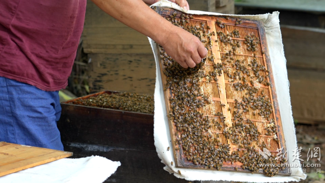 荊楚網(wǎng)(湖北日?qǐng)?bào)網(wǎng))訊(通訊員王虹)眼下,正值釀蜜時(shí)節(jié),蜂農(nóng)也到了一年當(dāng)中最忙碌的時(shí)刻,孝昌縣小悟鄉(xiāng)萬(wàn)沖村的蜂農(nóng)們忙著割蜜、搖蜜、裝蜜……現(xiàn)場(chǎng)一派豐收的喜悅。