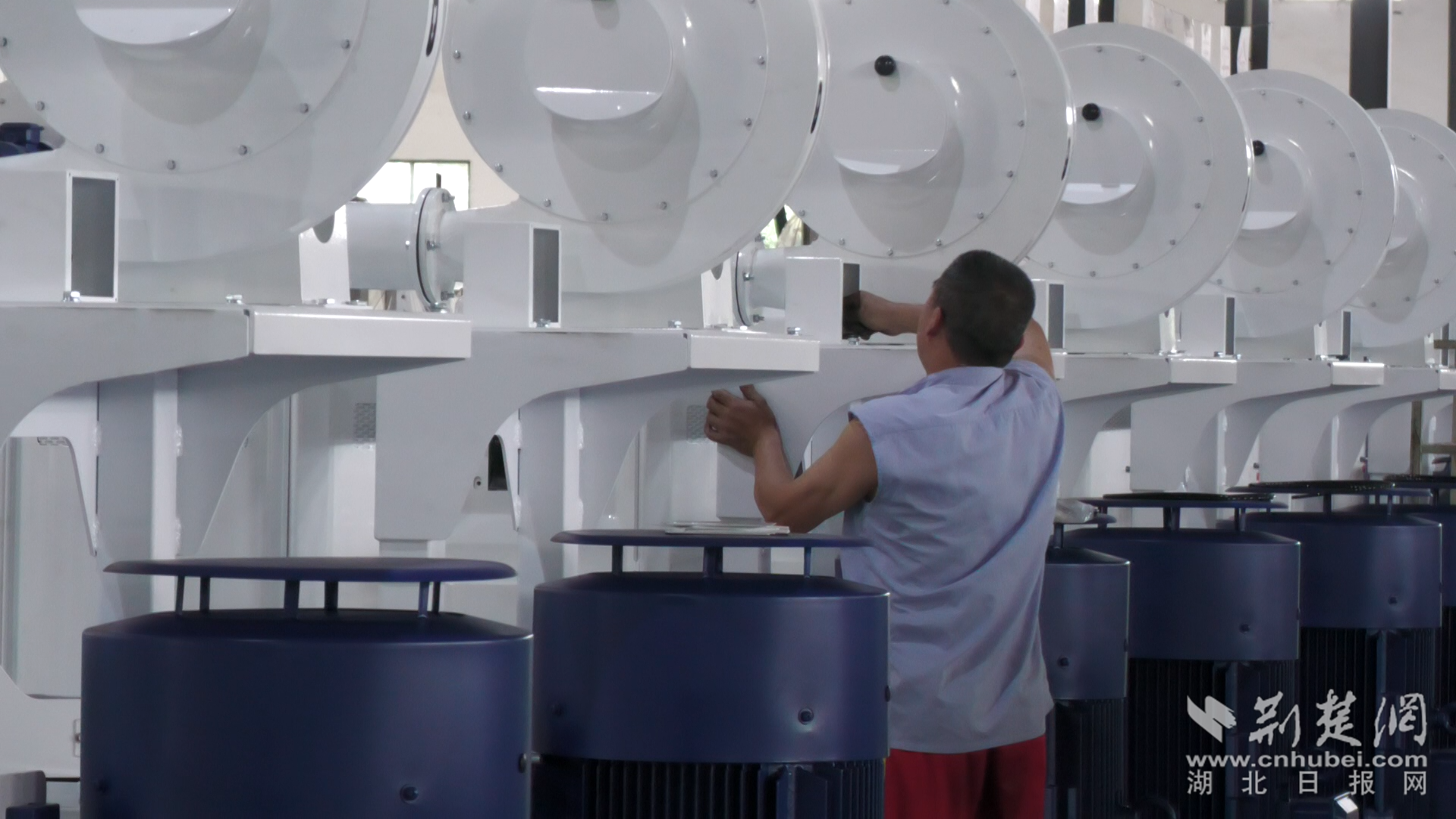 工人正檢查、組裝設(shè)備。