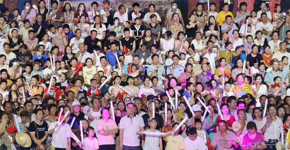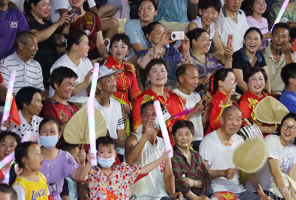 華燈初上,匡河小學籃球場熱鬧非凡,驕陽似火,酷暑難耐,但是依然擋不住球迷們的熱情,村民們揮舞著國旗,加油聲、喝彩聲一浪高過一浪,享受著體育競技活動帶來的樂趣。