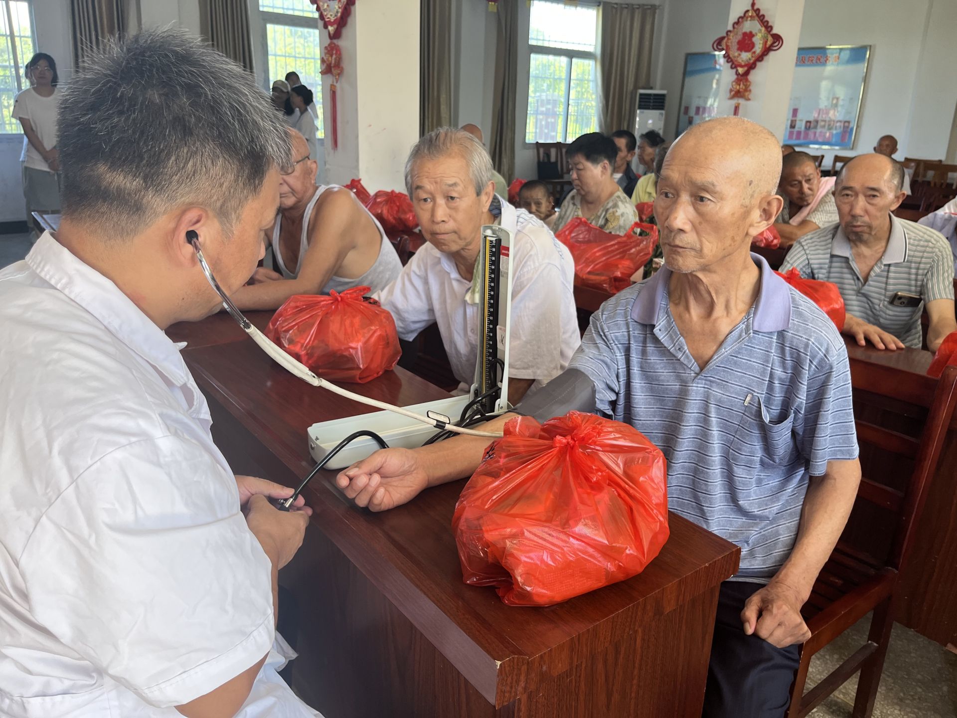 福利院內(nèi),大別山支教團志愿者們細心的幫助老人整理房間、打掃衛(wèi)生、清洗衣物,陪老人談心聊天,科普急救和防電信詐騙知識,大悟縣“救在身邊”志愿服務(wù)隊志愿者為老年人免費體檢,進行耳鼻喉、視力、血壓、血糖等項目檢查,并根據(jù)每位老人不同的身體狀況給出合理化的建議和健康指導。