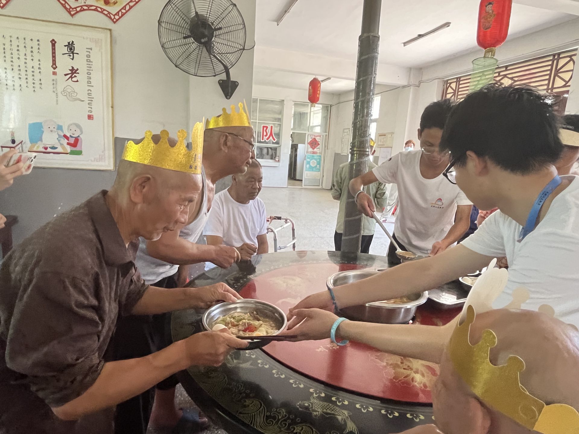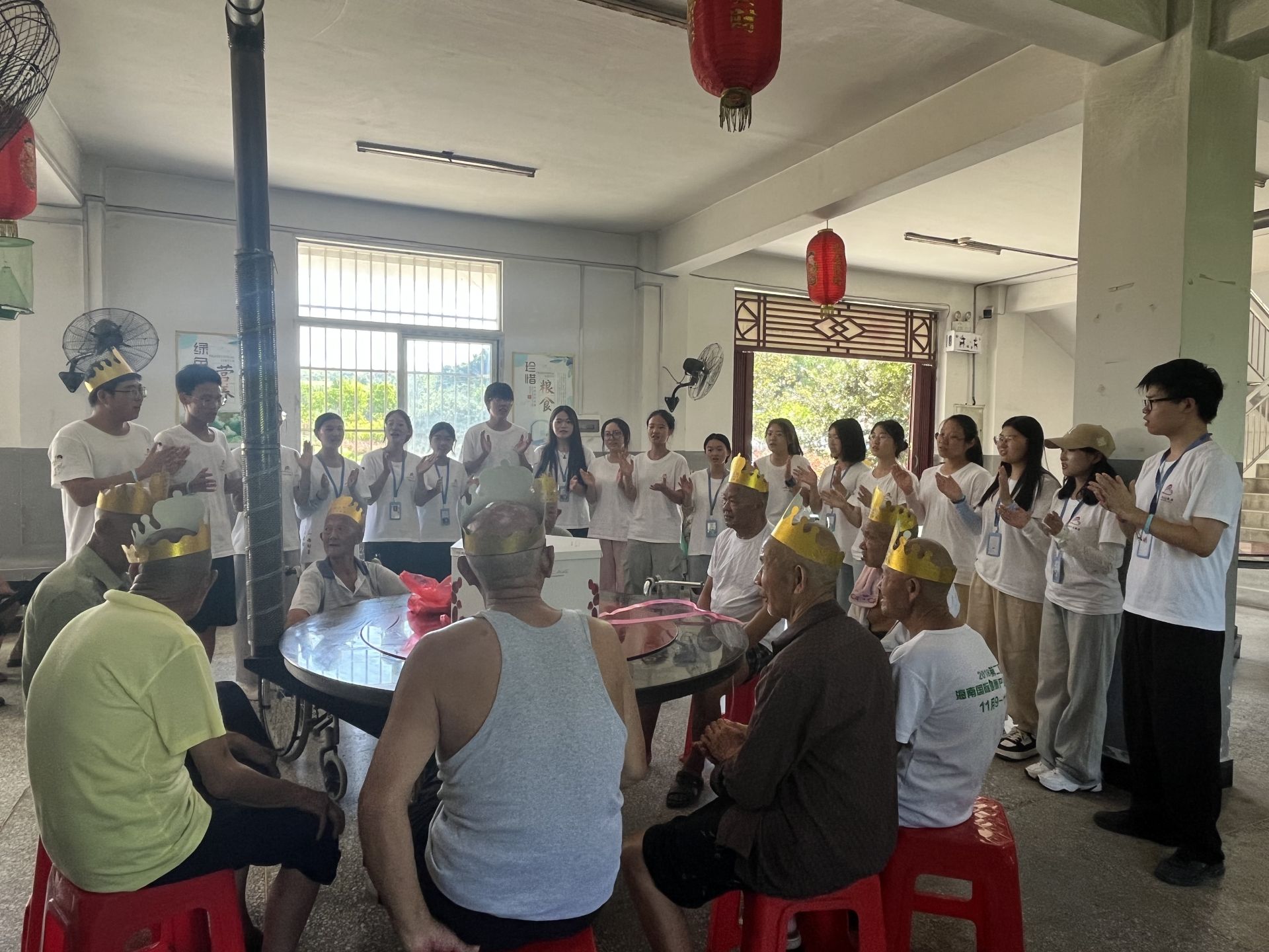 中午,大別山支教團志愿者和福利院工作人員一起配菜做菜,煮長壽面,通過唱生日祝福歌、表演手勢舞、做小游戲等方式為老人慶祝生日?!拔矣X得老年人生活很不方便也很不容易,想用自己的力量給他們帶來溫暖,希望社會多多關(guān)心關(guān)愛老人?!崩霞沂谴笪蚩h宣化店鎮(zhèn)的第十三屆大別山支教團成員、湖北大學研究生林青說。