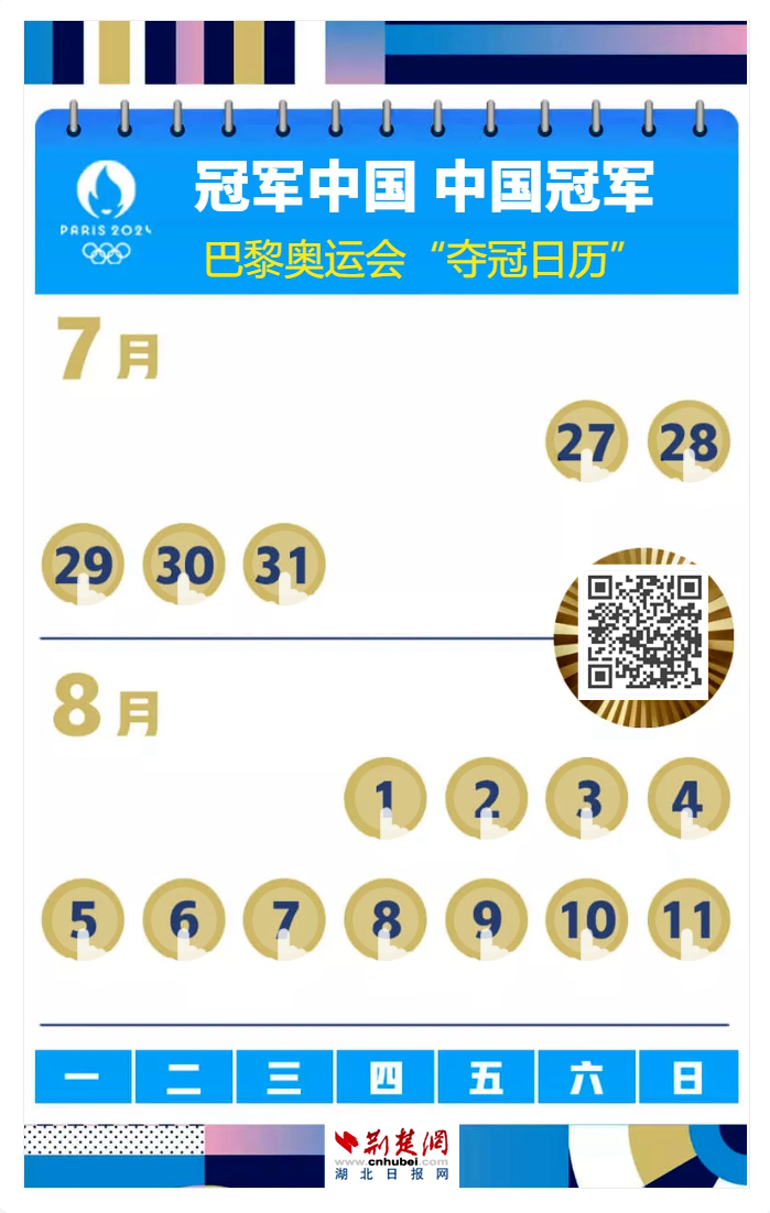 巴黎奧運(yùn)會(huì)“奪冠臺(tái)歷”