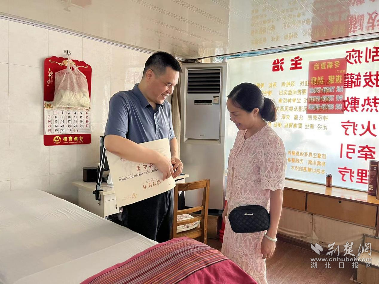 “太感謝了!這么熱的天氣還專門來跟我送證書!”從孝南區(qū)殘聯(lián)工作人員手中接過榮譽證書,車站街民主社區(qū)視力殘疾人梁國紅用手不停的摸索著證書上面的盲文,臉上露出了燦爛的笑容。