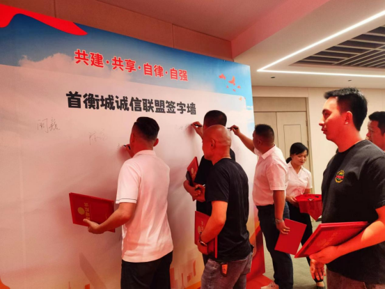 誠信聯(lián)盟啟動儀式活動現(xiàn)場,宣讀了《首衡城誠信聯(lián)盟實(shí)施方案》,通過了《首衡城誠信聯(lián)盟章程》《首衡城誠信共同宣言》,入駐商戶簽訂了《誠信經(jīng)營承諾書》,參會領(lǐng)導(dǎo)為獲證商戶頒發(fā)了《首衡城誠信聯(lián)盟入駐企業(yè)證書》。