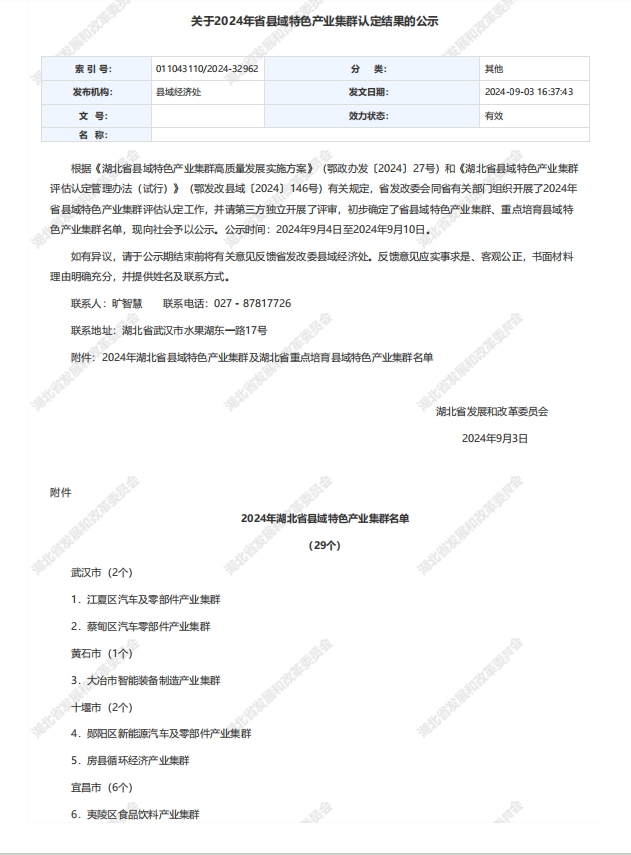荊楚網(wǎng)(湖北日?qǐng)?bào)網(wǎng))訊(記者 楊卓玉)9月3日,湖北省發(fā)改委公布2024年省縣域特色產(chǎn)業(yè)集群認(rèn)定結(jié)果公示名單,孝感市6大產(chǎn)業(yè)集群入選。