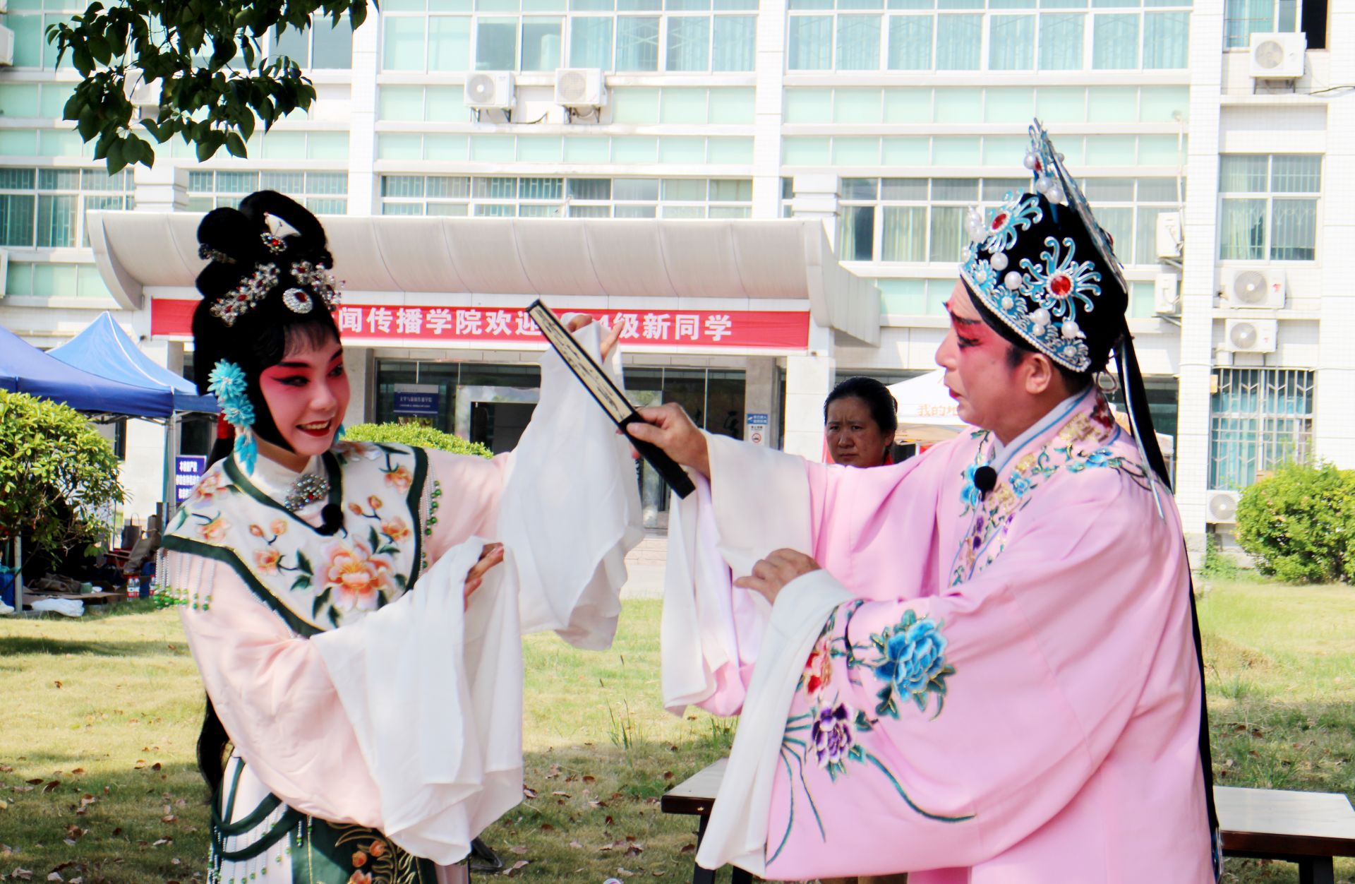 荊楚網(wǎng)(湖北日報網(wǎng))訊(通訊員程鑫鑫)“哇!這就是楚劇嗎?我只是聽過《梁山伯與祝英臺》,但是這也是第一次現(xiàn)場看,這也太有韻味了吧!”一群新生及其家長紛紛駐足觀看、拍照。9月7日,是湖北工程學(xué)院新生報到的第一天,在文學(xué)與新聞傳播學(xué)院迎新處,正舉辦著“醉美澴川,非遺孝感”迎國慶非物質(zhì)文化遺產(chǎn)進校園普及周活動。