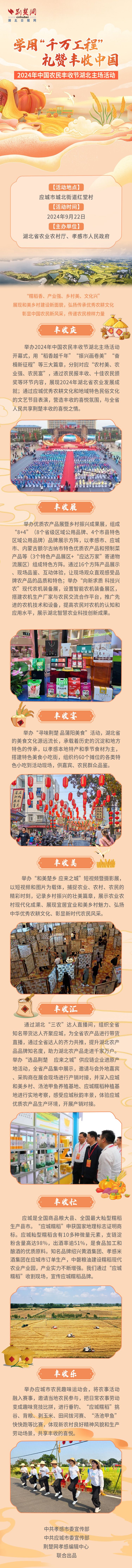 荊楚網(wǎng)(湖北日?qǐng)?bào)網(wǎng))訊(記者黃菲 通訊員李林 馮璇 李夢(mèng)婷)9月14日下午,從孝感市召開(kāi)的新聞發(fā)布會(huì)上獲悉,2024年中國(guó)農(nóng)民豐收節(jié)湖北主場(chǎng)活動(dòng)將于9月22日在應(yīng)城市城北街道紅堂村舉行。
