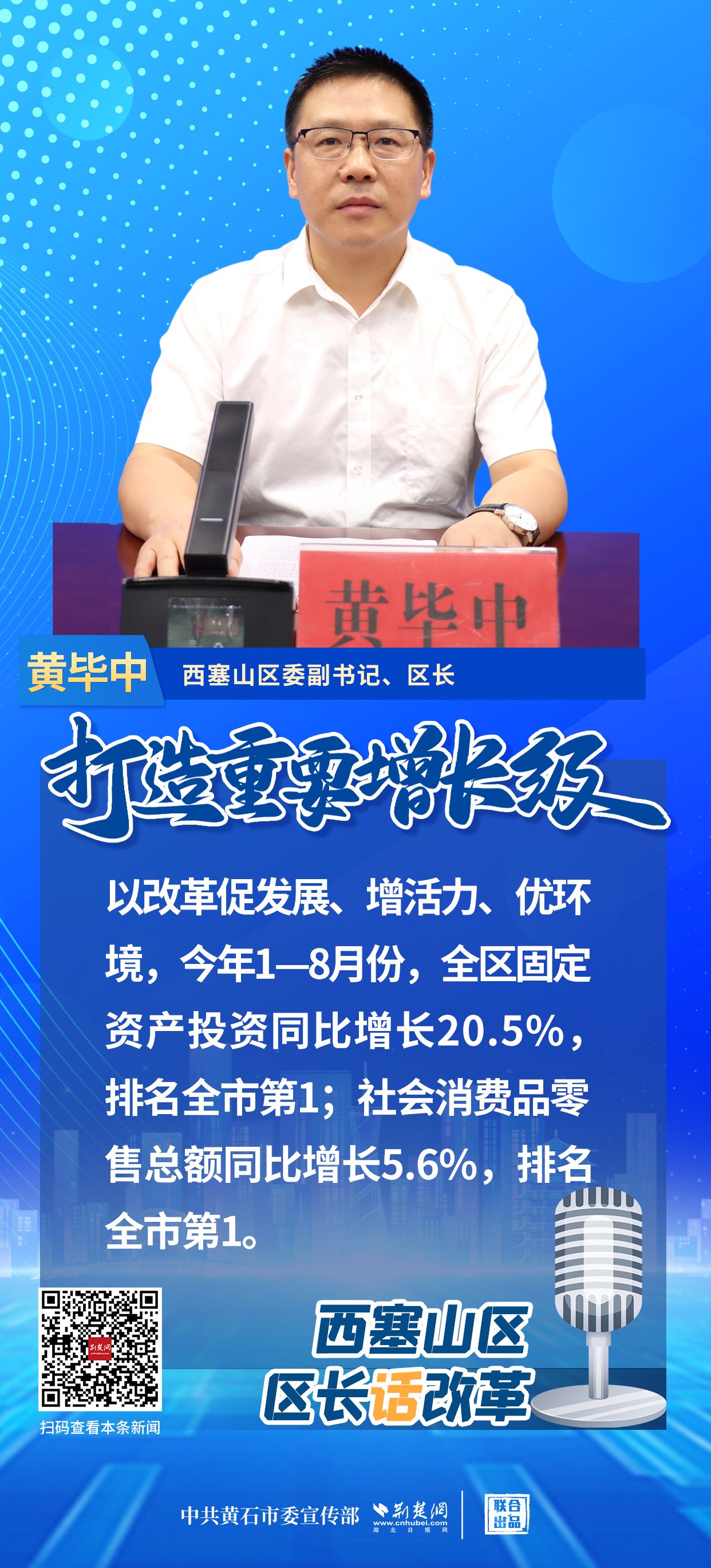 荊楚網(wǎng)(湖北日報網(wǎng))訊(記者 阮瓊 劉璐 通訊員 王登虎)9月20日,黃石市召開“打造重要增長極 縣(市、區(qū))長話改革”第五場新聞發(fā)布會,介紹西塞山區(qū)打造重要增長極、深化改革工作情況。