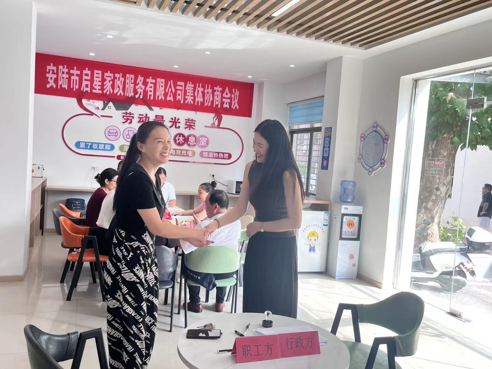 “這次協(xié)商活動為我們提供了一個很好的平臺,多方代表從不同角度出謀劃策,不僅有助于保障員工的合法權(quán)益,提高工作積極性,還能促進家政行業(yè)構(gòu)建和諧勞動關(guān)系,實現(xiàn)勞資雙方共贏。”安陸市啟星家政服務有限公司負責人表示。
