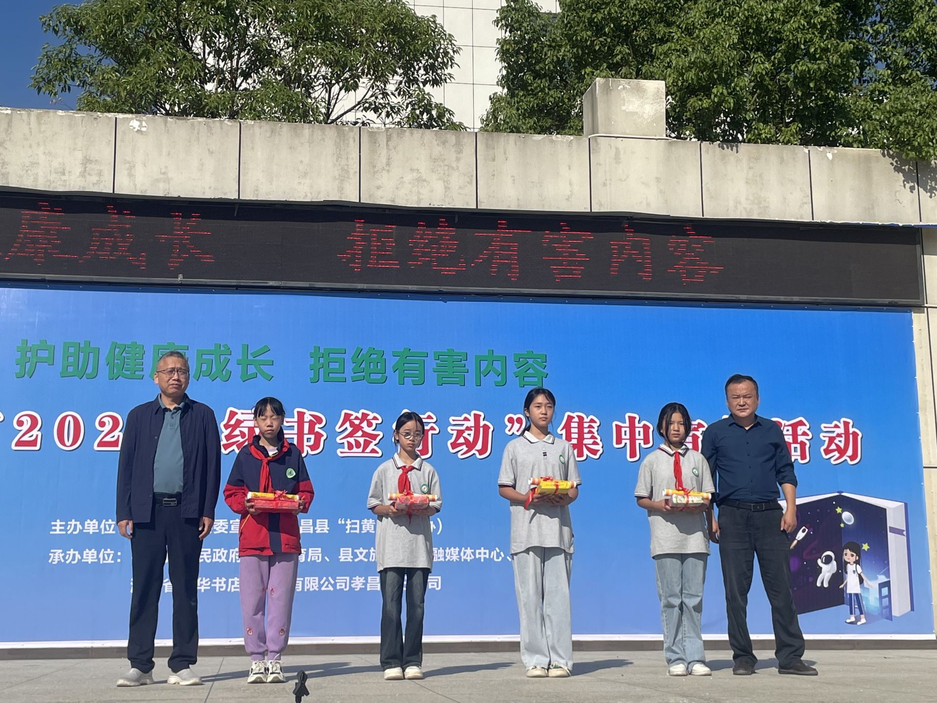 荊楚網(wǎng)(湖北日?qǐng)?bào)網(wǎng))訊(通訊員 武雪)“掃除黃,打擊非。保產(chǎn)權(quán),示公平。盜版書,不能看。非正版,莫聽傳......”9月24日,一陣陣?yán)世噬峡谟指挥薪逃饬x的“掃黃打非”三字經(jīng)朗誦聲在孝昌縣澴西學(xué)校操場(chǎng)上回蕩,該縣“護(hù)苗2024·綠書簽行動(dòng)”集中宣傳活動(dòng)拉開序幕?;顒?dòng)由孝昌縣委宣傳部(縣“掃黃打非”辦)舉辦,旨在深入推進(jìn)“護(hù)苗2024”專項(xiàng)行動(dòng),大力營(yíng)造全社會(huì)共同關(guān)心關(guān)愛未成年人健康成長(zhǎng)的良好氛圍。