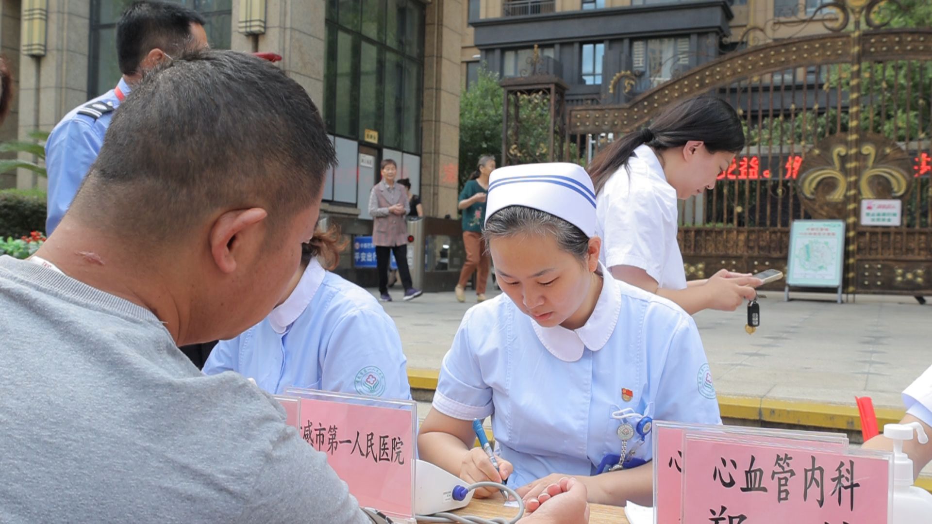義診現(xiàn)場,6位來自金心團隊的醫(yī)護人員免費為居民們測量血糖、血壓,測心電圖,武漢亞心醫(yī)院駐孝感市第一人民醫(yī)院的閔志勇教授也在現(xiàn)場為居民朋友提供心血管健康咨詢等服務(wù)?!跋裎覀兤綍r上下班忙工作,對自己身體狀況啊比較忽視,今天在小區(qū)門口就有一醫(yī)院的醫(yī)生免費測血糖血壓,了解一下自身健康狀況,真的蠻方便我們老百姓,希望能經(jīng)常舉辦這樣的義診??!”前來測血糖的李女士感慨道。